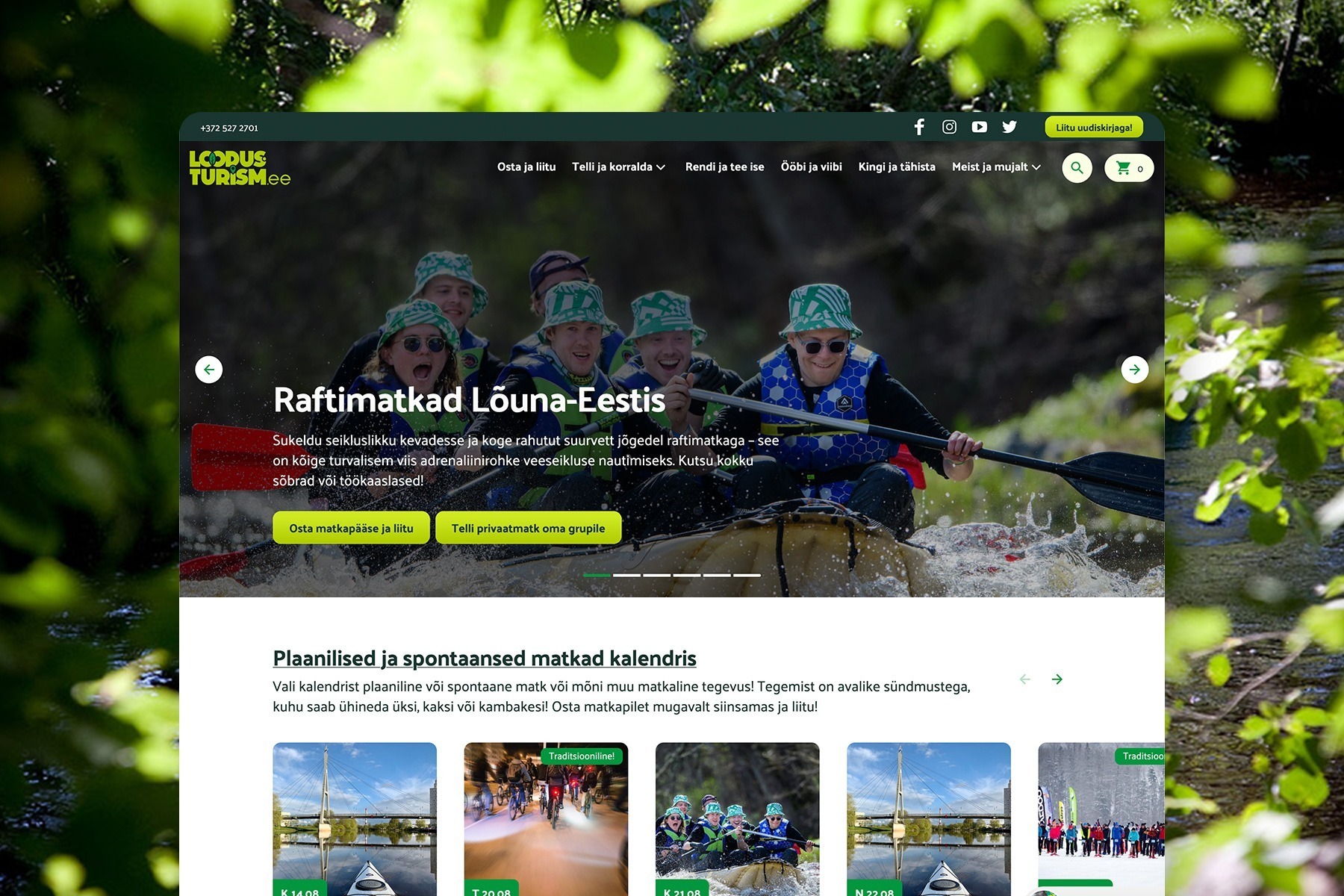 Et ettevõttel on tootestatud suur hulk tegevusi ja kohti, oli müügi sujuvamaks muutiseks vaja korralikku e-poe lahendust. Arendasime WooCommerce’il põhineva e-poe, kus saab liituda plaaniliste avalike matkadega. Lisaks saab teha päringu oma grupi matkale, seiklusele, laagrile, millele iganes. Matkavahendeid nagu paate, rattaid jms on võimalik ka rentida. Kasutajale mugav on ka andmebaas Lõuna-Eesti majutuskohtadest koos nende pakutavate matkateenustega.
