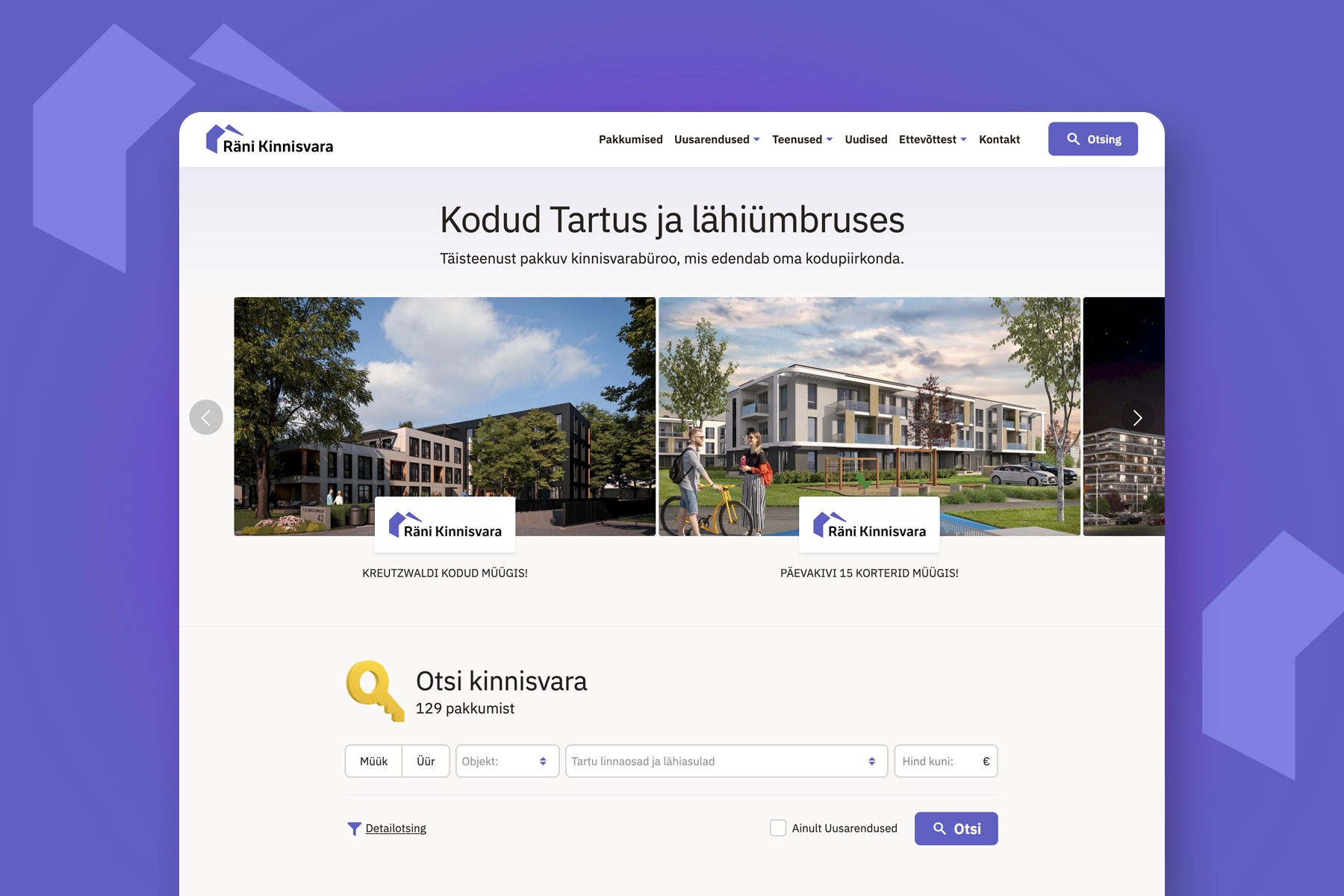 Räni Kinnisvara arendab Tartu lõunaservas suurt elurajooni ja pakub lisaks elukinnisvara teenuseid Tartus ja lähivaldades. Loodud veebilehe eesmärk on kasvada keskkonnaks, mis koondaks ka teiste arendajate ja eraklientide Tartu piirkonna kinnisvarakuulutused ja uudised. Lisaks on veebil Räni Kinnisvara jaoks ka esindusveebi ülesanne.