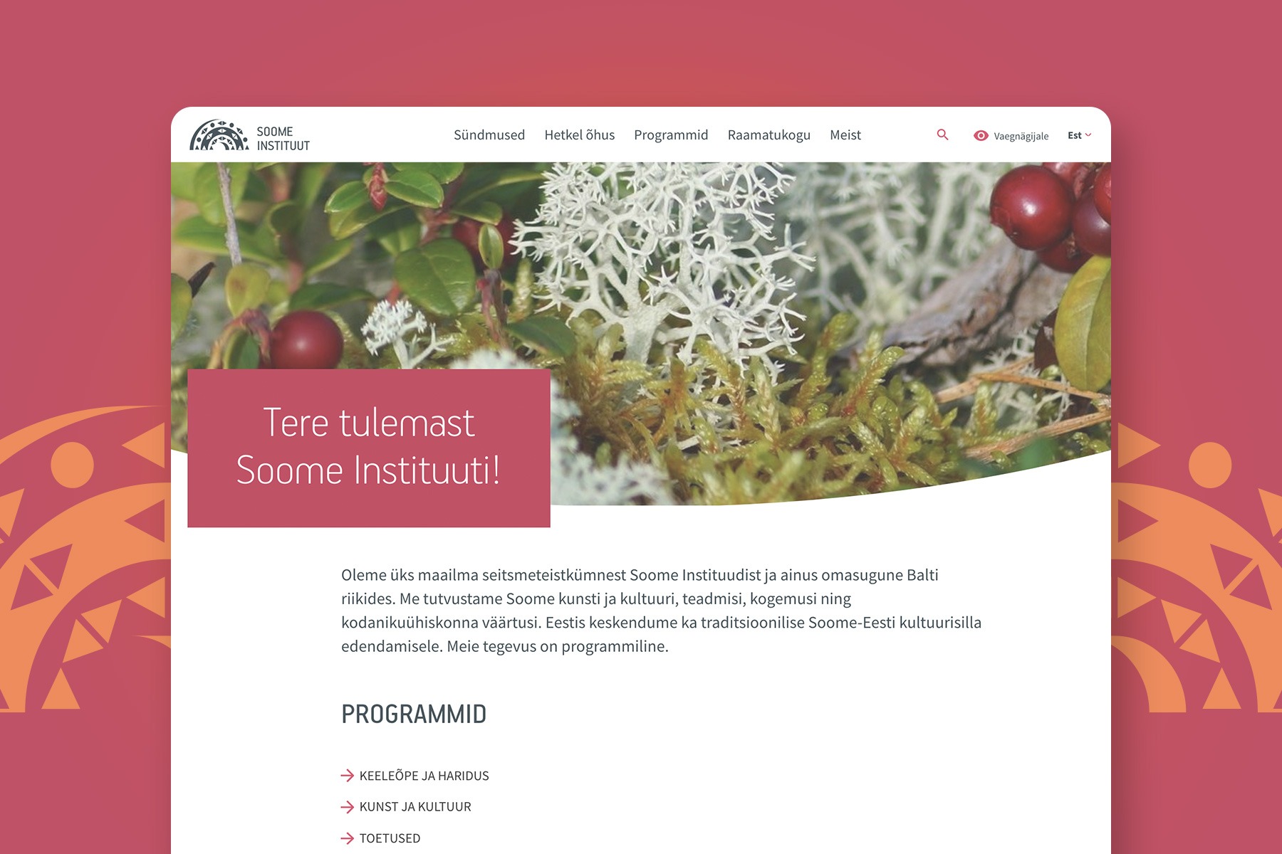 Organisatsiooni koduleht jagab infot nii instituudi tegemiste kui Soome kultuuri ja väärtuste kohta laiemalt.