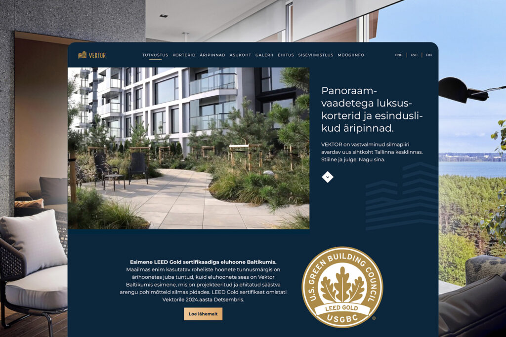 A large and luxurious tower block, or rather a block of houses, with powerful panoramic views and a roof garden is being built in Tallinn. Our long-term client Triple Net Capital wanted an exclusive sales website for their development that expressed the values and style of the development.